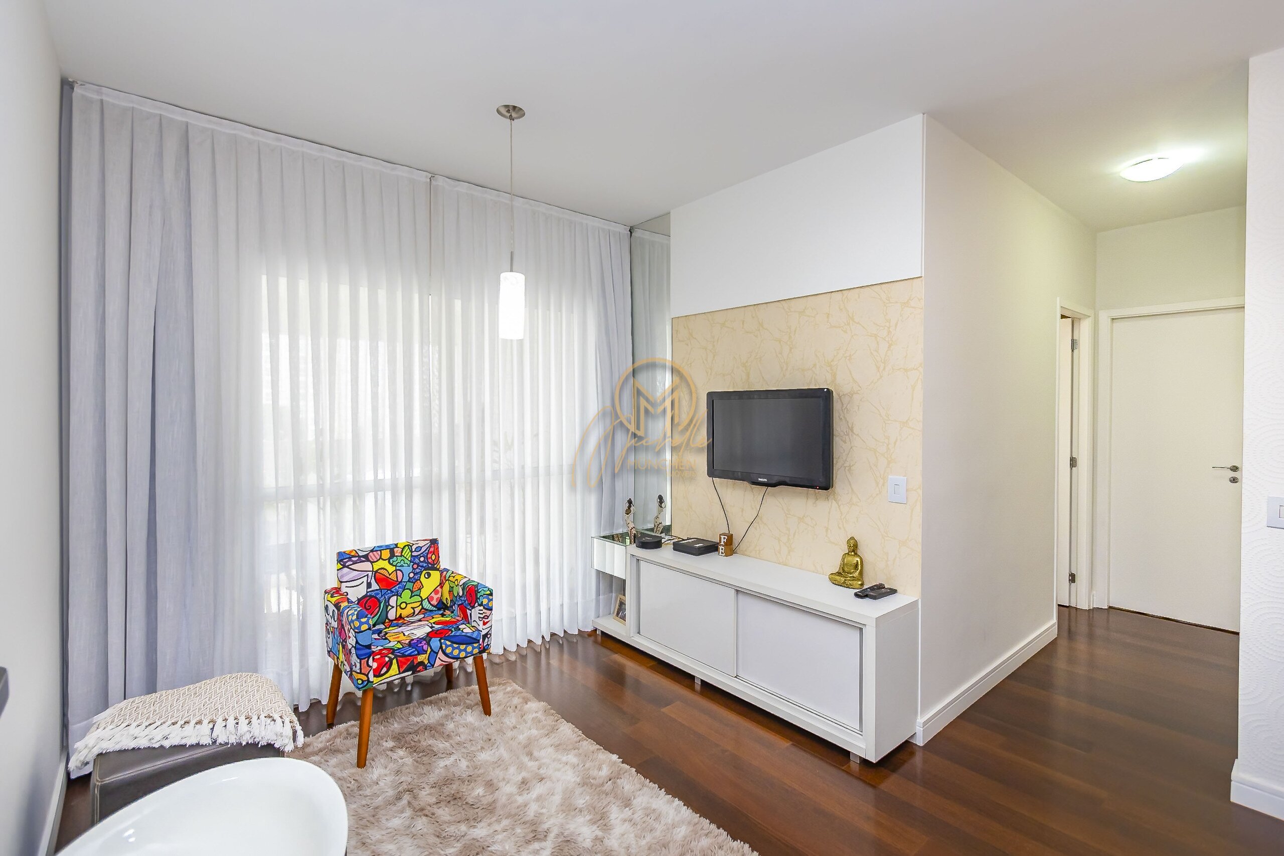 Sala com painel de TV